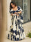 This dramatic maxi dress boasts a cream-white base with bold navy floral prints, offering a modern and sophisticated statement look. The gown features a flattering sweetheart neckline, puffed three-quarter sleeves with tie details, and a tiered ruffle hem that creates graceful movement. Perfect for formal events, festive gatherings, or destination celebrations, this dress blends artistic flair with feminine elegance in a flowing silhouette.